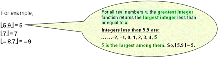 In other words, the greatest integer function rounds down a real number to the nearest integer