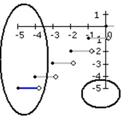 Observe in the graph above that in each interval, the function f(x) is constant. Within an interval, the value of the function remains constant. For example, the value of the function f(x) remains – 5 in the interval [–5, –4)